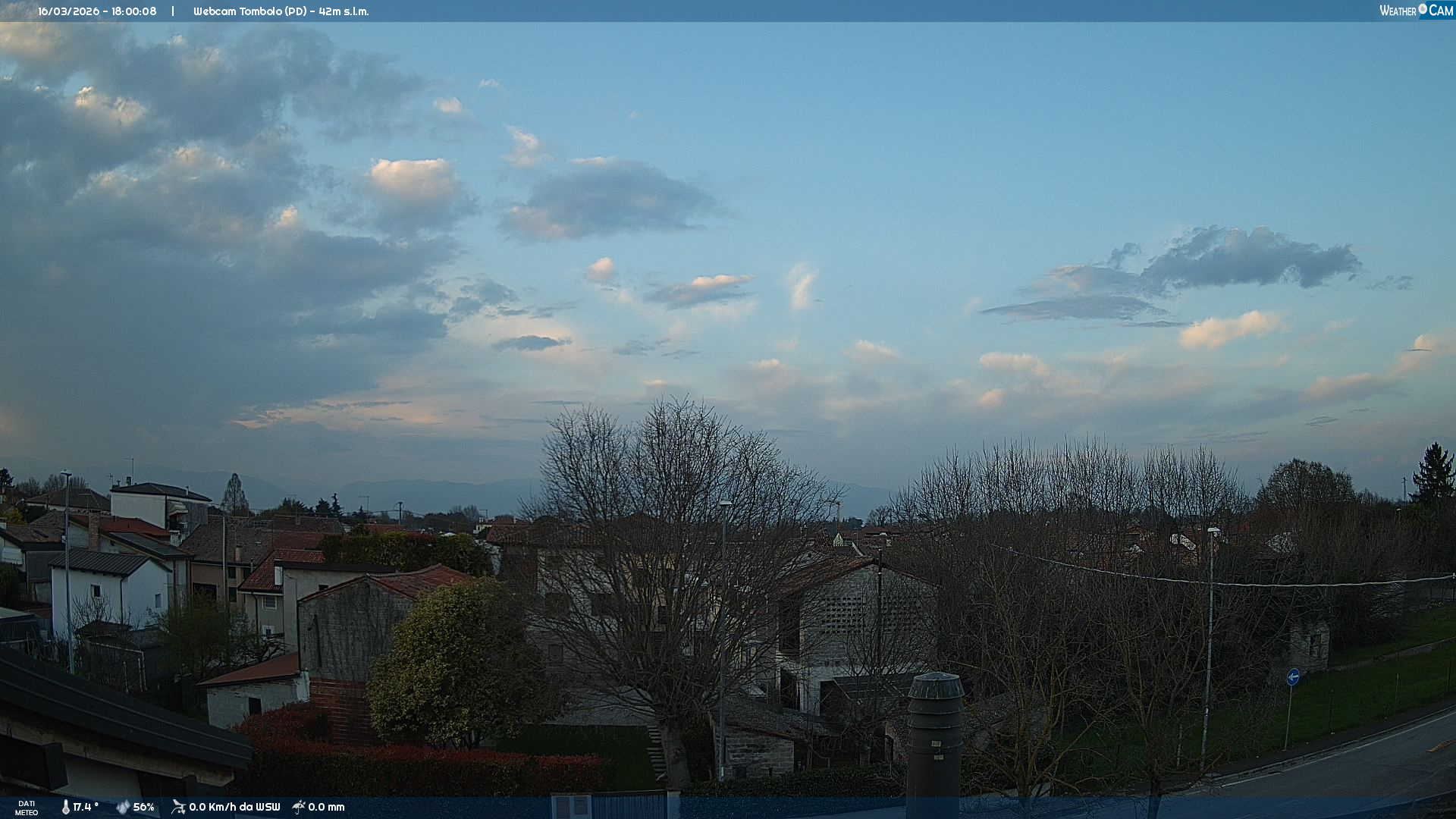 Timelapse Webcam di Tombolo (PD), aggiornamento 2 volte al giorno. Clicca sul periodo della giornata per visualizzare il video